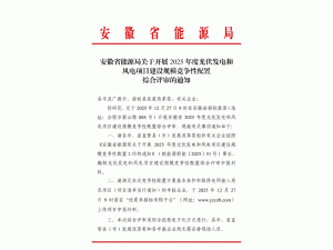 12月27日,安徽省2025年度光伏发电项目建设规模竞争性配置中选结果公告发布,共计26个项目入选,规模3GW。