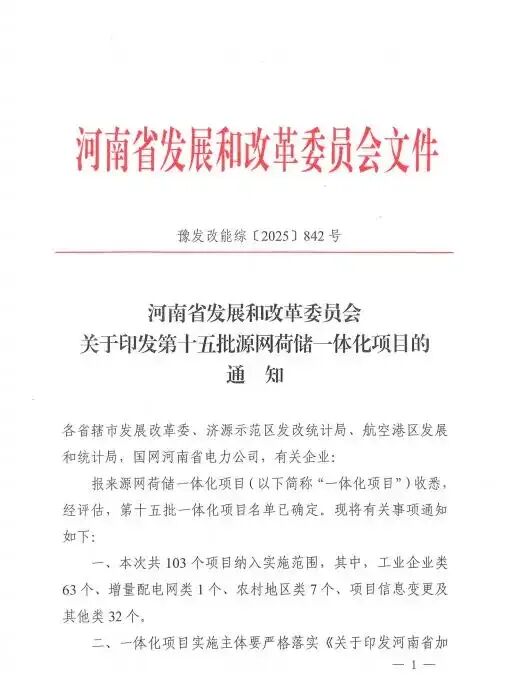 日前,河南省发改委印发通知,公布第十五批源网荷储一体化项目名单。根据通知,此次共有103个项目纳入源网荷储一体化项目实施范围,其中工业企业类项目63个、增量配电网类1个、农村地区类7个、项目信息变更及其他类32个。通知原文如下: