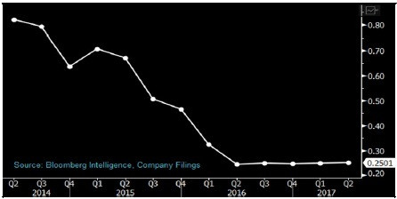 Bloomberg Intelligence 旗下分析的太阳能行业企业 2017 年业绩趋势图