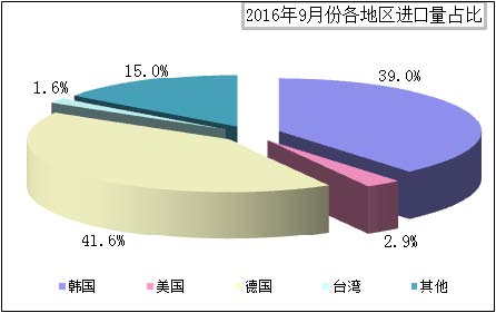 图2 2016年9月份各地区进口量占比 数据来源:海关