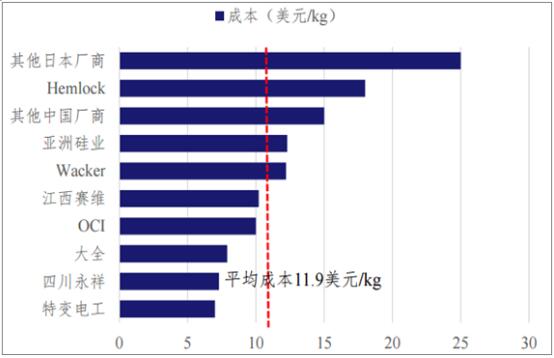 国内主要硅料厂商成本显著低于海外厂商及平均成本