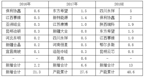 2016-2018中国主要多晶硅厂商扩产计划:万吨