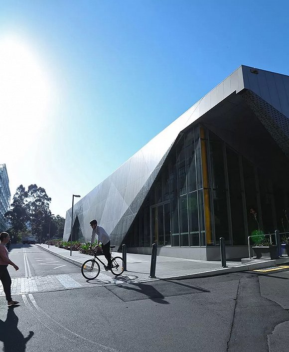 八月的杭州天气异常闷热,在余杭区未来研创园的屋顶上有一个钙钛矿组件小屋,从地图上看,未来研创园的主体办公楼像是一个“U”型磁铁,屋顶被大片蓝色多晶硅组件覆盖,除了不远处一个无人机起飞点,钙钛矿组件小屋显得十分特别。