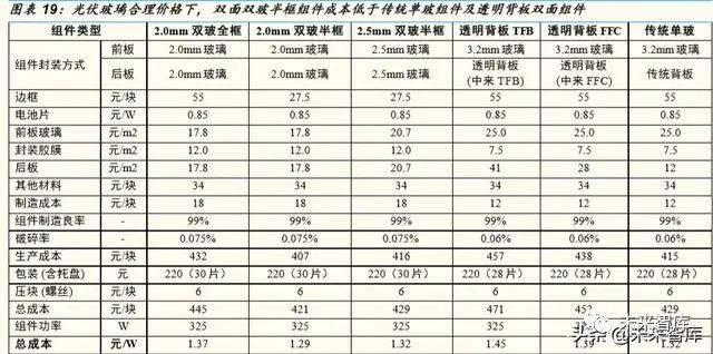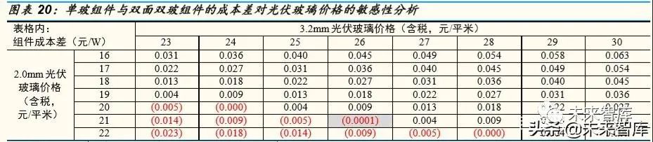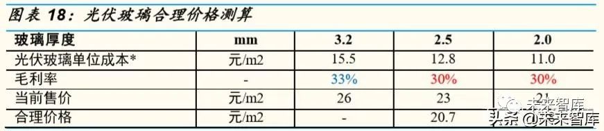 即使短期光伏玻璃价格达不到我们测算的合理价格,但只要 2.0mm 与 3.2mm 玻璃存在足够价差(3-7 元/平米),双面双玻组件成本也可以做 到比普通组件更低。