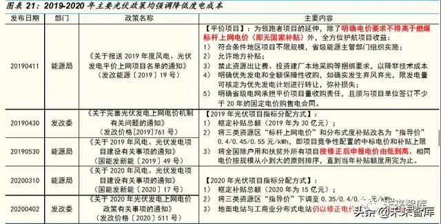 2019-2020 年光伏上网电价政策变化较大:1)将此前分地区、分类型的固 定电价补贴制度改为全类型项目全国统一竞价的形式(仅户用和扶贫除外);2)推出该政策的目的是让补贴资金用到度电成本最具竞争力的项目上,从 而令有限的补贴资金盘子转化为尽可能多新增装机规模。