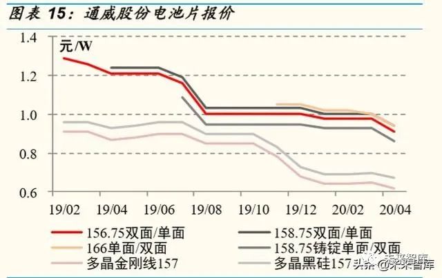 虽然目前 2.0mm 双玻组件比单玻组件成本更高,但差距仅 0.01 分/W, 与当前单晶 PERC组件 1.66 元/W的含税价相比已微不足道。