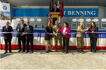 乔治亚电力、美国陆军、乔治亚州公益事业委员会(Georgia Public Service Commission)等的关系人士参加了百万光伏电站的亮灯仪式,还剪了彩。(摄影:乔治亚电力)