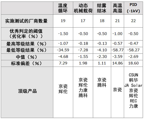 另外,京瓷和江苏辉伦太阳能的电池板在全部测试中均取得了最优秀的结果。继上次之后,京瓷的太阳能电池板此次也在所有项目中都获得了顶级产品的认证。