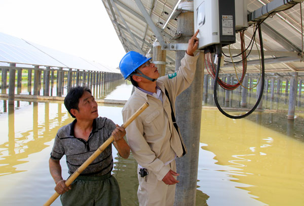 “多亏了供电部门给我出谋划策,建了这‘渔光互补’的光伏电站,让我养蟹发电两不误,村上人都说我这是‘双赢’的买卖啊!”6月10日上午,江苏常州溧阳市供电公司埭头供电所三名员工来到该镇余家坝村“渔光互补”水上光伏电站开展入夏光伏发电设备检查时,电站负责人史国虎高兴的说道。