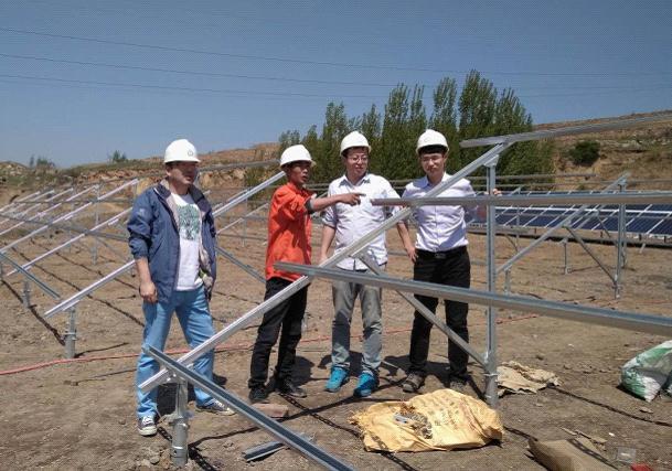 近日,审计署驻济南特派员办事处在政策跟踪审计中关注惠农项目建设情况,实地核实集中式光伏电站的建设进度和质量,重点了解电池板安装、配套电网建设进展以及建设资金的到位情况。图为审计人员查看光伏惠农项目施工现场,促进惠农项目及时发挥效用。