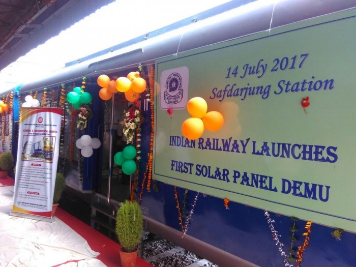印度柴油电动多单位(DEMU)列车于7月14日正式投入使用。这部1600马力的火车离开德里南部的Safdarjung车站,搭载了六个车厢,外表面铺设有光伏电池板,以满足清洁能源系统的电力需求。