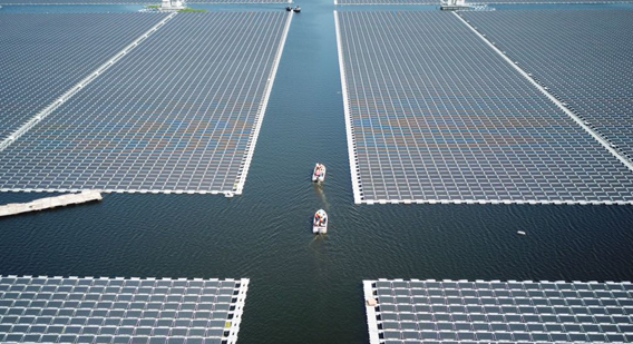 安徽省淮南市潘集区刘龙采煤沉陷区,已被水侵占,成为一片6000多亩的水面。在秋日的晴空下,这片“长”在水里的光伏电站随着碧波轻轻荡漾。记者在现场看到,一个个太阳能元件被安装在一个又一个灰色塑料浮桶上,整齐排列在6000亩的水面上,一眼望不到头,在这些元件阵列的周围,汇流箱和四通八达的电缆正在将光能汇聚上岸,据了解,这个水面漂浮光伏电站的元件总数超过120000个。设计寿命为25年,10年能收回投资成本。