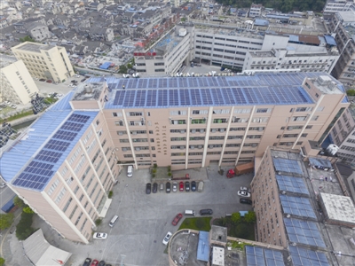 得益于今年夏季的晴好天气,位于市区中国鞋都的巨一集团,通过厂房屋顶新安装的太阳能发电板,在阳光下持续吸收着“养分”。