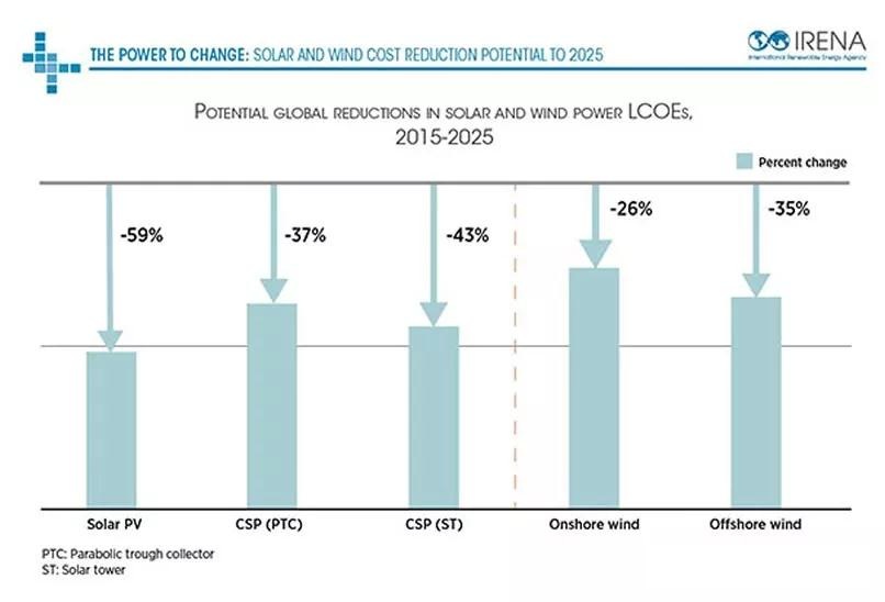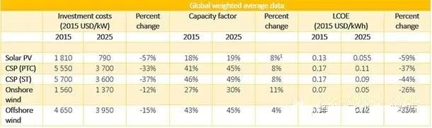 到2025年,光伏、光热、陆上和海上风电成本将大幅度下降: