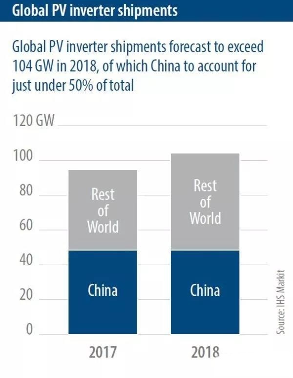 根据IHS Markit预计,2018年全球太阳能光伏发电装机容量将再增加108GW,其中中国占到该数据的近50%。对逆变器而言,IHS Markit的高级太阳能分析师Cormac Gilligan认为,明年将有104GW的电力供应,而中国将再次占到总发货量的不到一半。他说:“中国市场继续表现强劲,在2017年增长了50%以上,实现了令人难以置信的强劲增长。”