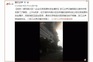 据媒体报道,近日,位于湖州吴兴区的润祥科技公司化学品原料发生爆炸。