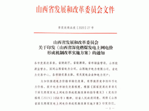 山西发改委官网消息:为加快推进电力价格市场化改革,有序放开竞争性环节电力价格,提升电力市场化交易程度,山西省发展和改革委员会制定印发了《山西省深化燃煤发电上网电价形成机制改革实施方案》,自2020年1月1日起实施。