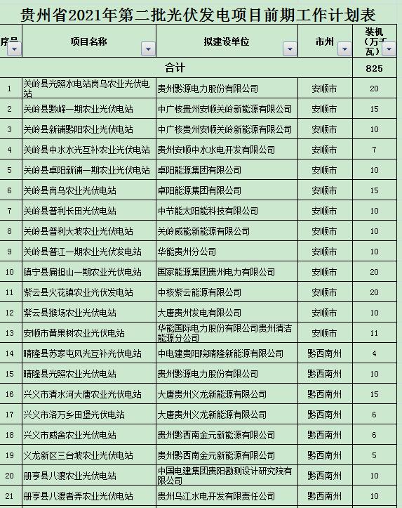 据贵州省能源局《关于下达贵州省2021年第二批光伏发电项目开展前期工作计划的通知》要求: