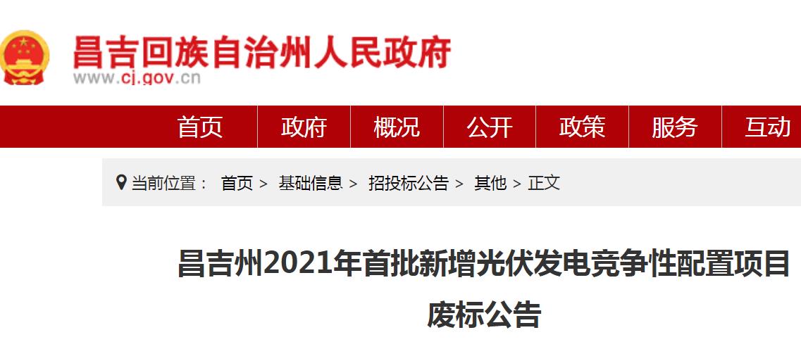 昌吉州政府网消息:4月13日,昌吉州发布2021年首批新增光伏发电竞争性配置项目废标公告称:昌吉州2021年首批新增光伏发电竞争性配置项目,于2021年4月13 日上午11:00(北京时间)在昌吉园林宾馆一楼大堂吧开标,在评标过程中,有9家单位均不符合招标文件1.2.2初步评审(投资业主资格审查),因投标人不足三家,无法继续开