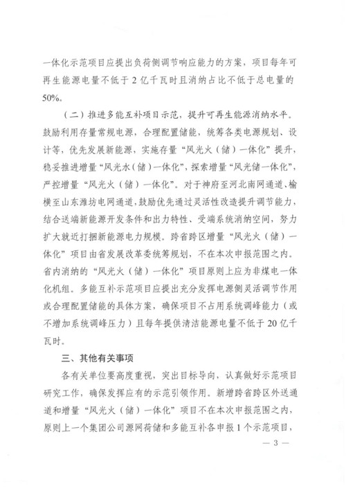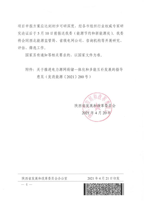 4月20日,陕西发改委发布了陕西关于推进电力源网荷储一体化和多能互补项目示范有关工作的通知。文件称,为实现“碳中和、碳达峰”目标,构建以新能源为主体的新型电力系统,根据《关于推进电力源网荷储一体化和多能互补发展的指导意见》和陕西省“十四五”能源发展规划编制工作等要求,拟在全省范围内推进一批源网荷储一体化和多能互补示范项目。新增跨省跨区外送通道和增量“风光火(储)一体化”项目不在本次申报范围之内。