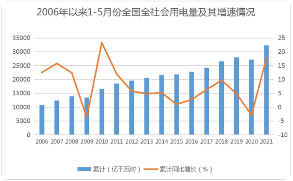 6月15日,国家能源局发布5月份全社会用电量等数据。
