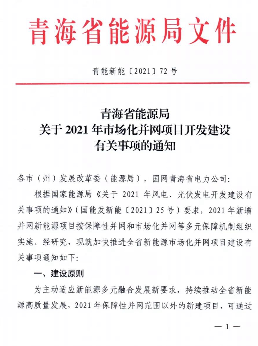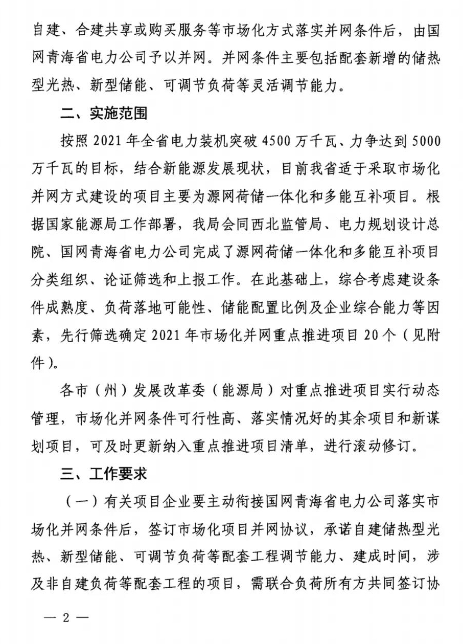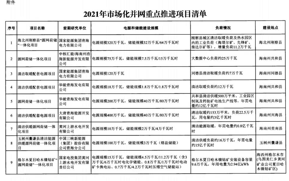 6月11日,青海省能源局印发《关于2021年市场化并网项目开发建设有关事项的通知》,明确了青海适于采取市场化并网方式建设的项目主要为源网荷储一体化和多能互补项目,2021年重点推进20个首批市场化并网项目,电源规模总计42.13GW、配备储能规模约5.2GW。