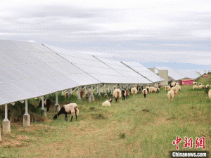“光伏电站建设在这里,成批量铺设的光伏板使得园区风速减小,蒸发量下降,空气湿度增加,草地涵水量大增,在一定程度上遏制了荒漠化的扩大延伸。”17日,青海省海南藏族自治州塔拉滩光伏产业园区的工作人员对记者说。