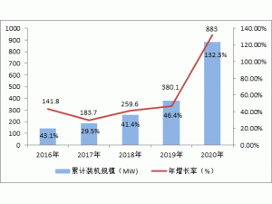 图1 2016-2020年中国累计投运光储市场及增长