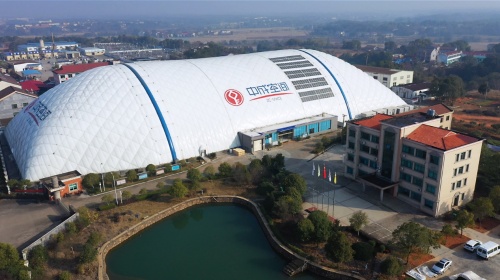 2021年12月22日,由中成空间打造的国内首个 光伏气膜 60kW发电项目,正式并网发电。该项目通过特殊的技术手段,在原气膜上铺设柔性单晶硅光伏板,将光伏与气 膜有效 结合,不仅能为火力发电、钢铁、港口码头等企业实现环保封闭,还能产生清洁能源,建设绿色港口,换取碳排放配额指标,赋能低碳减排。同时,在 国家碳达峰 、碳中和的