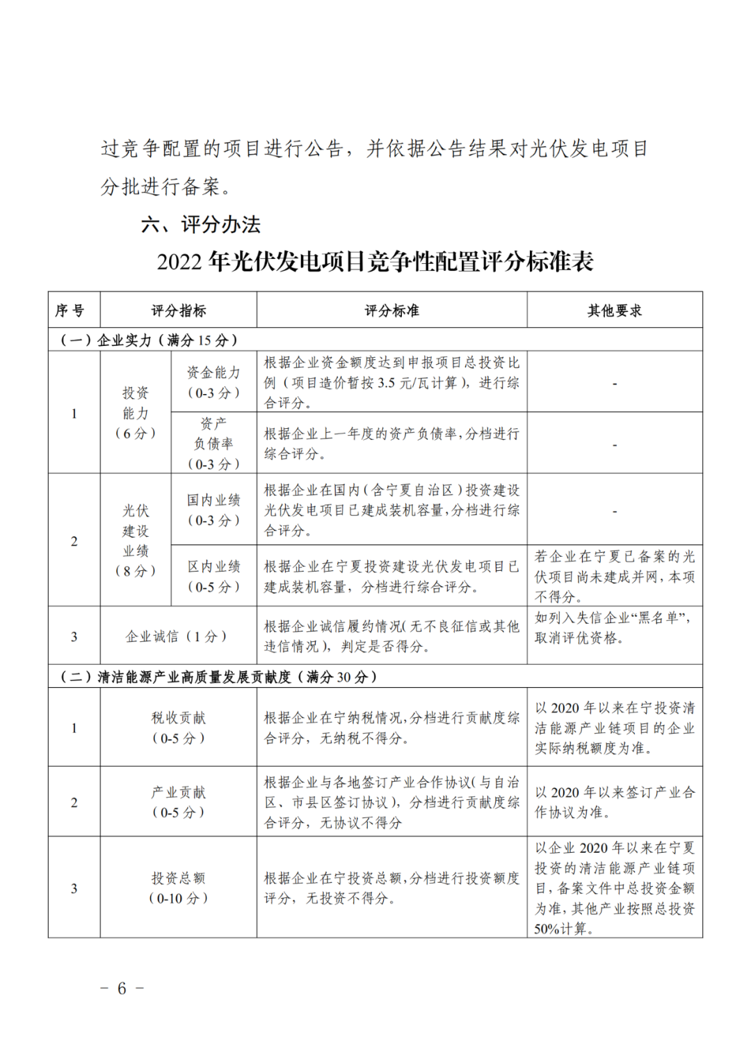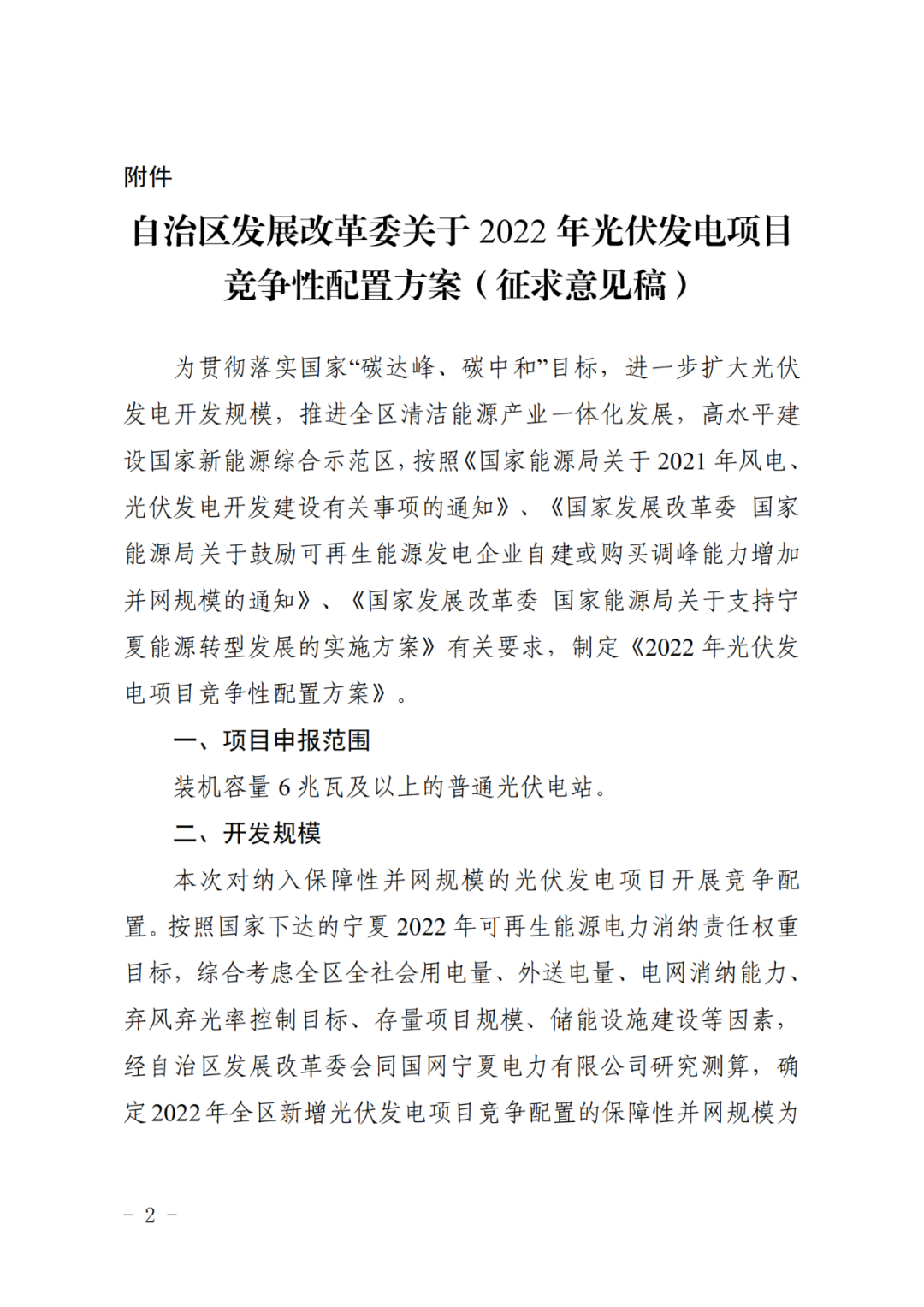 宁夏发改委就《2022年光伏发电项目竞争性配置方案》征求意见