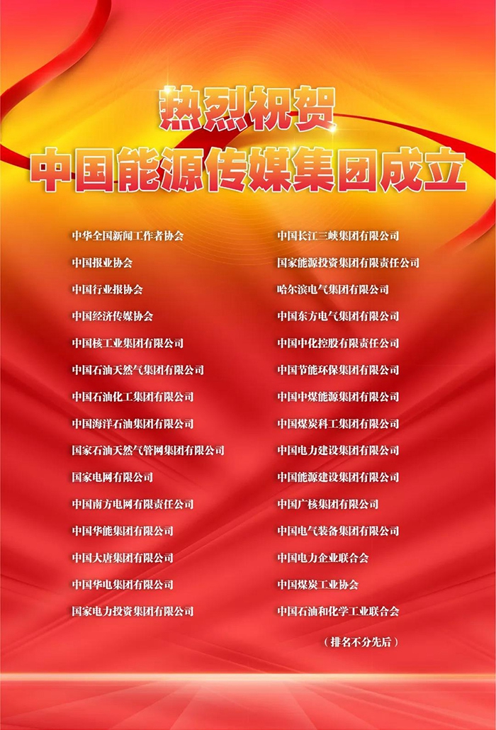 为贯彻落实党中央、国务院关于中央文化企业的决策部署,经国家能源局党组同意,报中宣部、财政部、市场监管总局等有关部门批准,国家能源局下属中国电力传媒集团有限公司正式更名为中国能源传媒集团有限公司。1月14日,中国能源传媒集团有限公司挂牌成立仪式在京举行,国家能源局党组书记、局长章建华出席仪式并致辞,与局党组成员、副局长林山青共同为中能传媒揭牌。