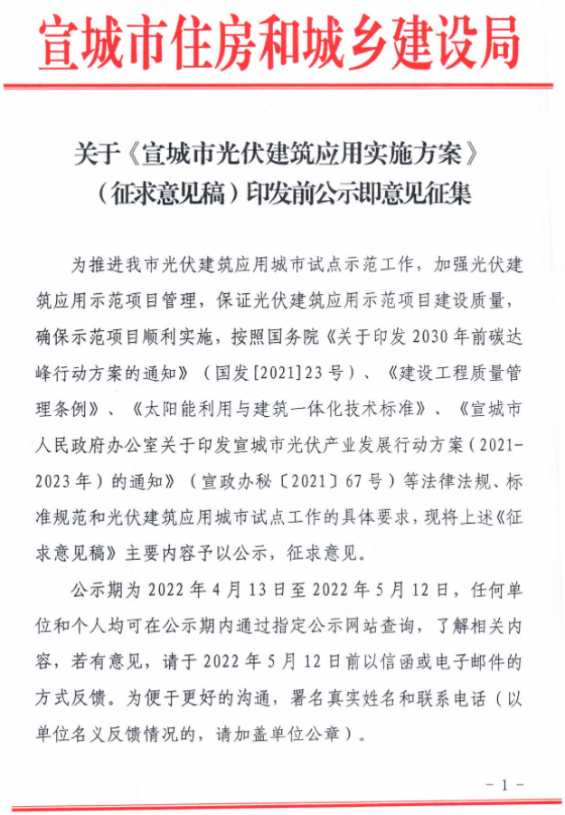 宣城市光伏建筑应用实施方案(征求意见稿)