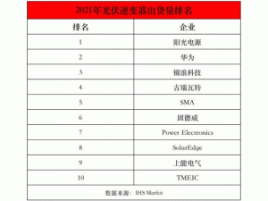 近日,全球调研机构IHS Markit发布了2021年全球光伏逆变器出货量排行榜!