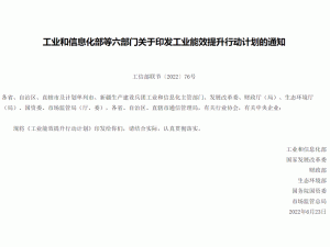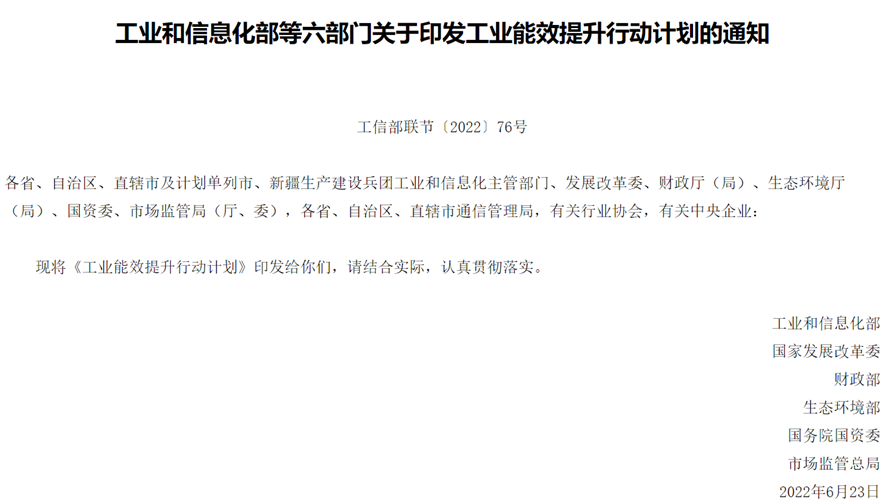 工业能效提升行动计划推进工业能效提升,是产业提质升级、实现高质量发展的内在要求,是降低工业领域碳排放、实现碳达峰碳中和目标的重要途径,是培育形成绿色低碳发展新动能、促进工业经济增长的有效举措。为深入贯彻落实党中央、国务院重大决策部署,进一步提高工业领域能源利用效率,推动优化能源资源配置,制定本行动计划。