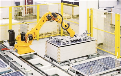 位于浙江海宁的正泰新能智能制造基地的光伏组件自动化生产封装车间。 正泰新能/供图位于浙江海宁的正泰新能智能制造基地的光伏组件自动化生产封装车间。 正泰新能/供图