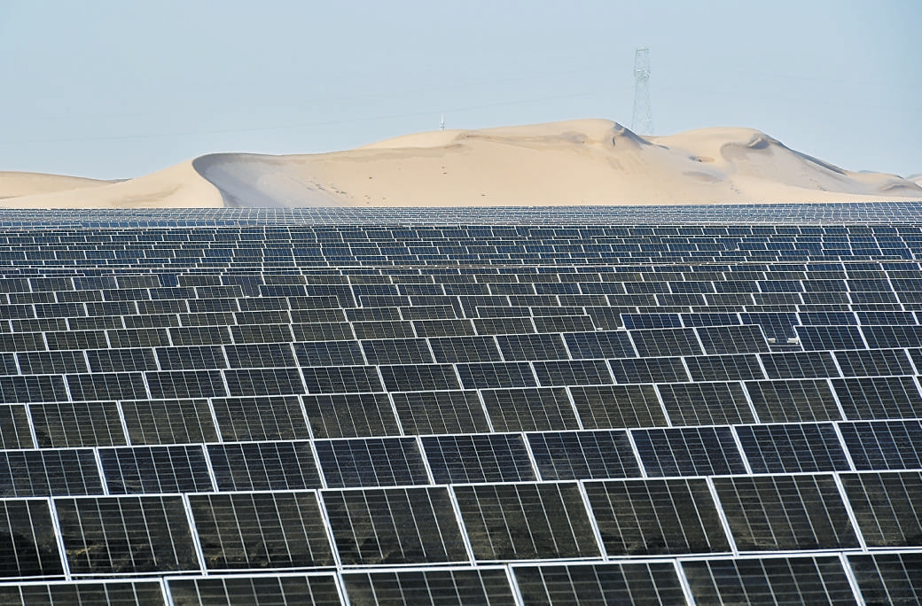 近年来,甘肃省武威市凉州区抢抓以沙漠、戈壁、荒漠地区为重点的大型风电光伏基地建设机遇,探索光伏治沙新模式,利用腾格里沙漠未利用国有土地50万亩,规划建设九墩滩光伏治沙示范园区,总装机容量1500万千瓦。