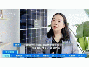 近日,CCTV2-中央电视台财经频道记者王耐、张华一行深入浙江、江苏等地,采访光伏回收相关企业、高校和行业协会负责人,调研了解国内光伏回收产业现状及发展。中国绿色供应链联盟光伏专委会光伏回收产业发展合作中心秘书长吕芳接受央视记者采访,重点介绍了光伏回收产业市场规模及现阶段面临的问题和挑战。该报道于7月24日在CCTV2-中央电视台财经频道的正点财经栏目播出。