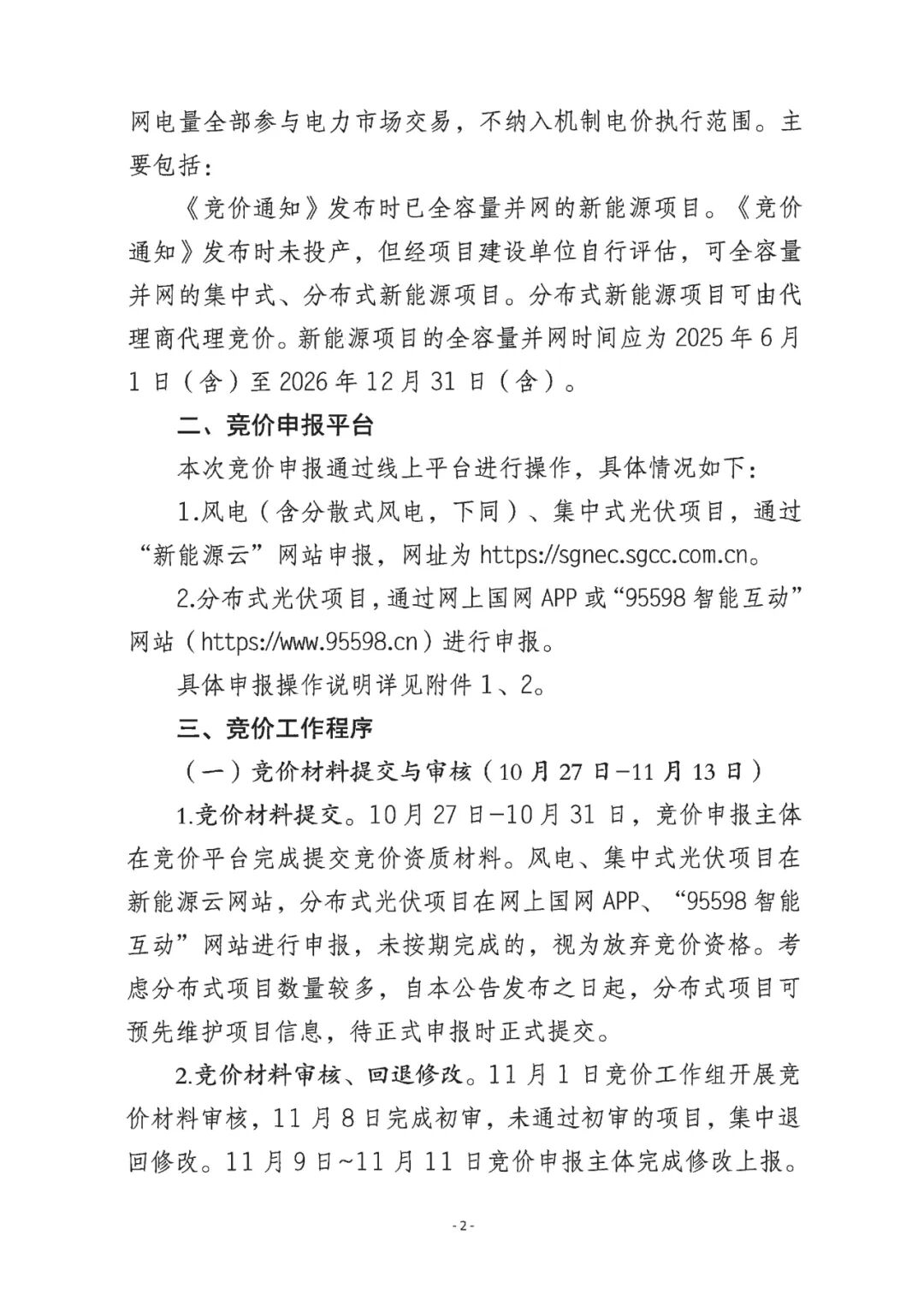 10月21日,河北电网、冀北电网分别发布《河北南网2025-2026年度新能源机制电价竞价组织公告》《冀北电网 2025-2026年度新能源机制电价竞价组织公告》,对2025年6月1日~2026年12月31日并网项目的机制电价竞价工作安排如下: