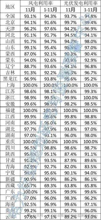 其中,风电2025年1-11月全国平均利用率为94.3%,光伏2025年1-11月全国平均利用率为94.8%。对比2024年1-11月风、光分别为96.3%、97.0%的全国平均利用率来看,明显下降。