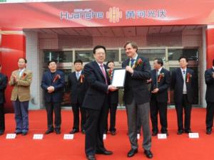 投产仪式上,西安黄河光伏科技股份有限公司分别与欧洲太阳能销售企业Solvo Solar公司签订了销售协议,由全球知名的第三方认证机构TÜV南德意志集团颁发了TÜV证书,并签署了合作战略协议,两份协议的签署必将使得公司新一年的业务发展如虎添翼。