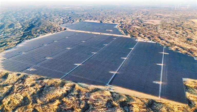 向“光”而生,逐“绿”前行。华能陕西孟家湾150兆瓦光伏发电项目是陕武直流特高压工程首个新能源配套项目,也是我国重要能源基地——榆林市探索绿色低碳发展之路的重点项目之一。