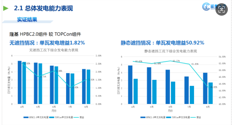 隆基泰州基地的实证电站通过一年的实证数据显示,“三防”组件比TOPCon累计单瓦发电增益高1.5%,单日最大单瓦发电增益高2.73%。
