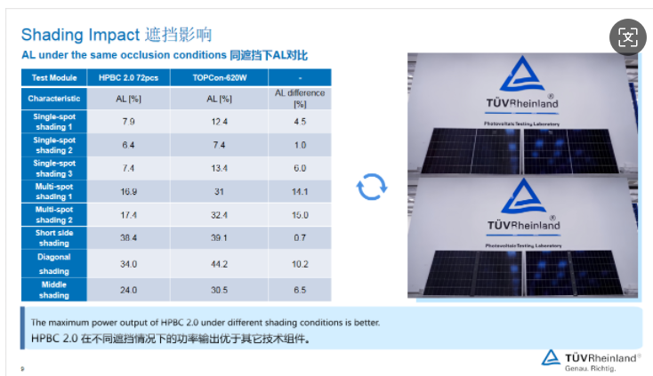 隆基HPBC 2.0组件喜获TÜV莱茵A+级防遮挡认证