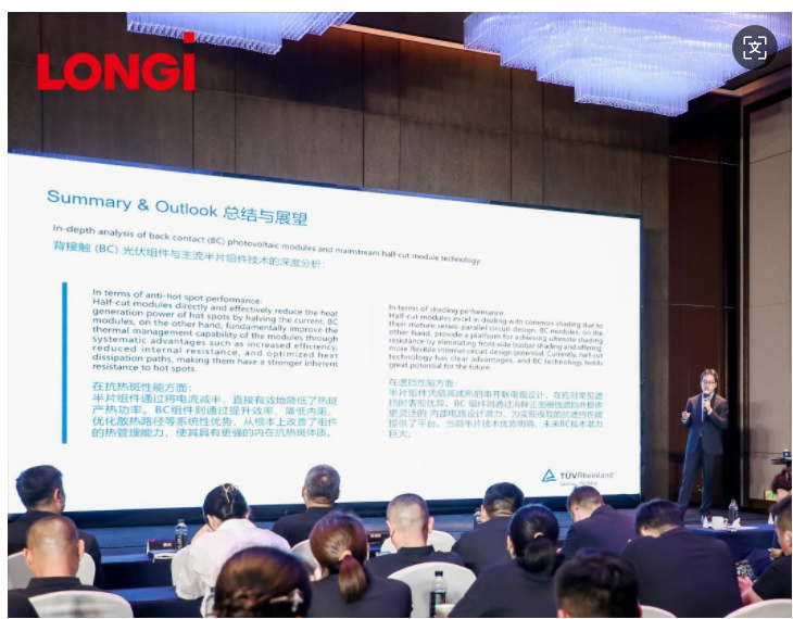 图说:北京鉴衡认证中心有限公司太阳能事业部技术总监朱晨分享《HPBC 2.0组件多场景多维度发电特性实证报告》
