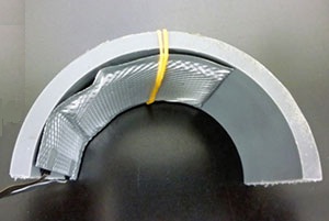 据称,该电池把在铝箔上涂布钴酸锂的正极材料与在铜箔上涂布碳的负极材料上下重叠。电池弯曲后,会向上施加张力,向下施加压力。通过采用凹凸的设计,外装可以伸缩,进而缓解压力,不会产生裂痕。
