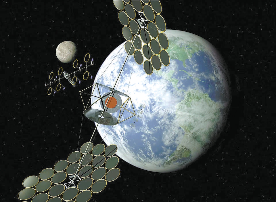 “能量收集平台”就是在太空中收集太阳能的航天器,这些航天器可以是在各种轨道上的卫星或空间站等。收集能量的手段除了我们大多数人直观想到的太阳能电池板(光伏发电)之外,还有将太阳能直接转为激光能量的技术路线。当然,更直接的方法是,把太阳光用镜面反射或聚焦到地球表面,类似于“人造月亮”。俄罗斯在20世纪90年代就开展过名为“旗帜”的一系列“人造月亮”实验,但效果不甚明显,后来没有继续深入推进研究。