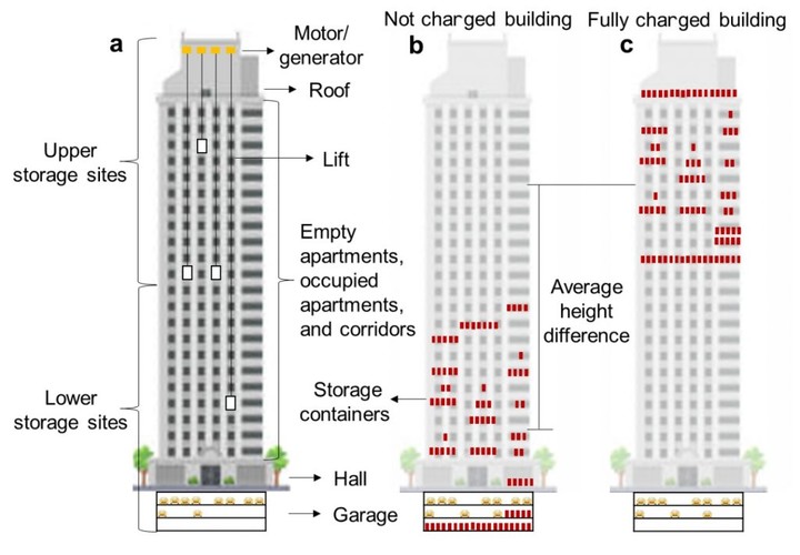 这个系统需要在建筑物的顶部和底部留有空间,LEST 连接两个存储站点,一个位于高层建筑的底部(下部存储站点),另一个位于同一建筑物的顶部(上部存储站点)。