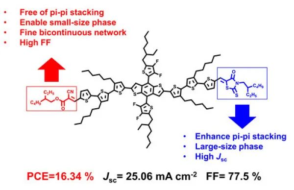 相关研究成果以Asymmetric Substitution of End-Groups Triggers 16.34% Efficiency for All-Small-Molecule Organic Solar Cells为题,发表在Advanced Materials上。研究工作得到中科院国家纳米科学中心和华南理工大学的支持,并获得国家杰出青年科学基金、国家自然科学基金等的资助。