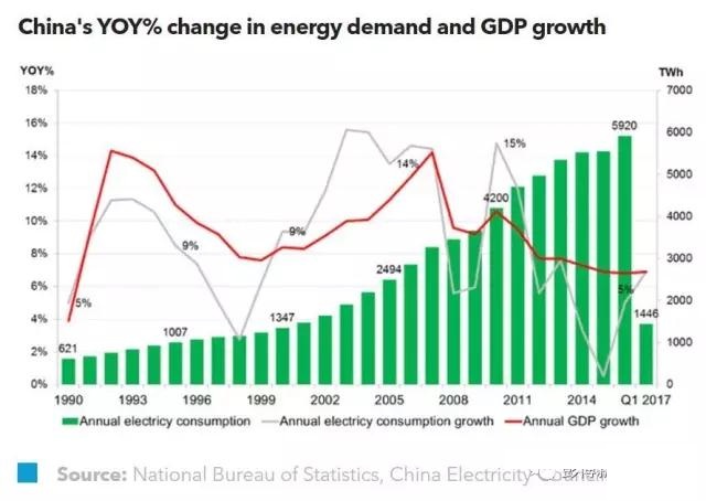 五年计划的周期性需求复苏:2016年,中国国家电力总需求同比增长5%,第一季度数据更是飙升到7%,创下近6年来的最高增长率。我们预测,2017年的电力需求增长在6%左右。从历史来看,随着资金和基础设施建设的到位,中国的经济活动,特别是高能耗、用电量最大的重工业,通常会在“五年计划”中的第二年和第三年中有所增强。