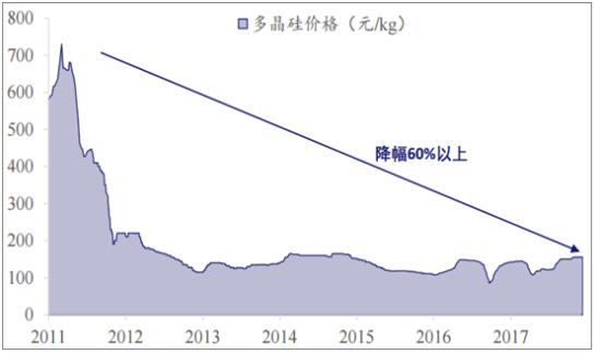 多晶硅价格大幅下降,2017年价格相比11年降低60%以上